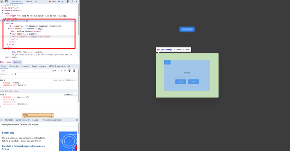 모달을 사용할 때 일반적인 HTML 구조를 살펴보면 다음과 같다. 페이지의 DOM 구조 내부에 모달이 있다. 그런데, portal을 사용하게 되면, DOM 구조 밖에 이 모달을 위치시킬 수 있다. 사용 방법 1. createPortal export function createPortal(children: ReactNode, container: Element | DocumentFragment, key?: null | string): ReactPortal; createPortal(JSX, 위치 시킬 Node) 예시: function Modal({children, onClose}) { return createPortal( X {children} , document.body); } 다시 HTML 구조를 살펴보면..