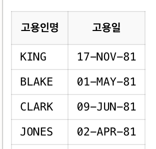 집계 함수란(Aggregate Function)? : 여러 행들의 그룹이 모여서 그룹당 하나의 결과를 반환하는 다중행 함수 [특징] - GROUP BY절 : 행들을 소그룹화 한다. - SELECT 절, HAVING 절, ORDER BY 절에서 사용할 수 있다. [종류] 집계 함수 사용목적 COUNT(*) NULL 값 포함, 행의 수 계산 COUNT(표현식) 표현식이 참인 행의 수 계산 (NULL값 제외) SUM([DISTINCT | ALL] 표현식) 표현식의 NULL값을 제외한 합계 AVG([DISTINCT | ALL] 표현식) 표현식의 NULL값을 제외한 평균 MAX([DISTINCT | ALL] 표현식) 표현식의 최대값 MIN([DISTINCT | ALL] 표현식) 표현식의 최소값 STDDEV([DI..